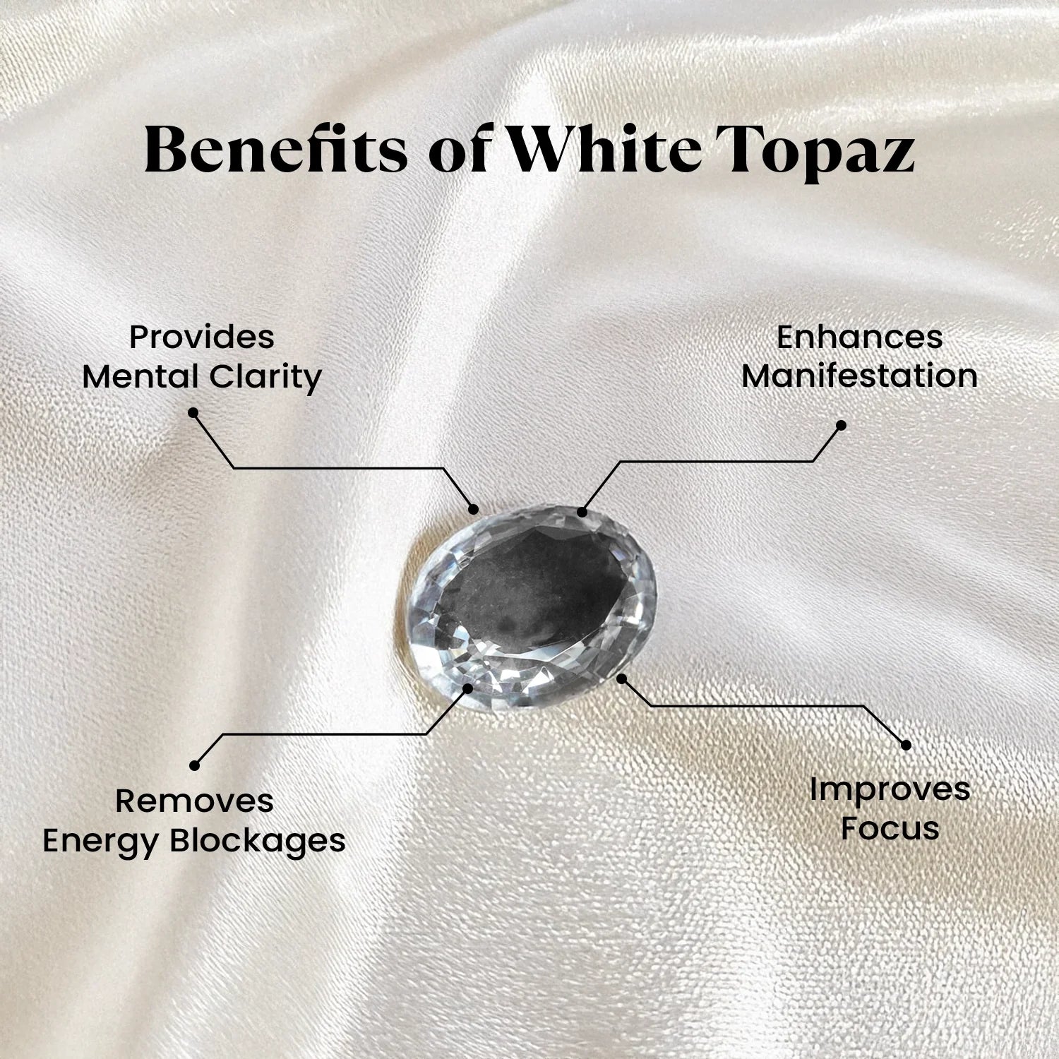 White Topaz is a gemstone that enhances mental clarity, focus, and aids in decision-making. Aligned with Venus, it attracts positivity and sharpens the mind.