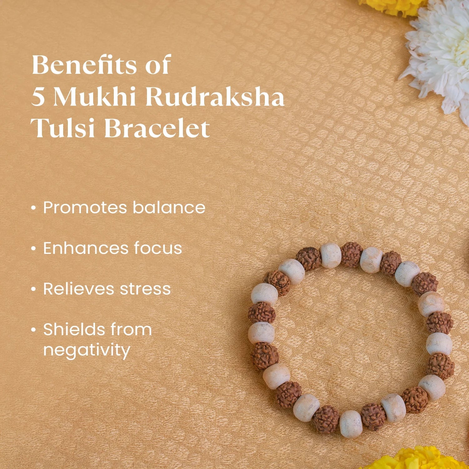 5 Mukhi Rudraksha Tulsi Bracelet