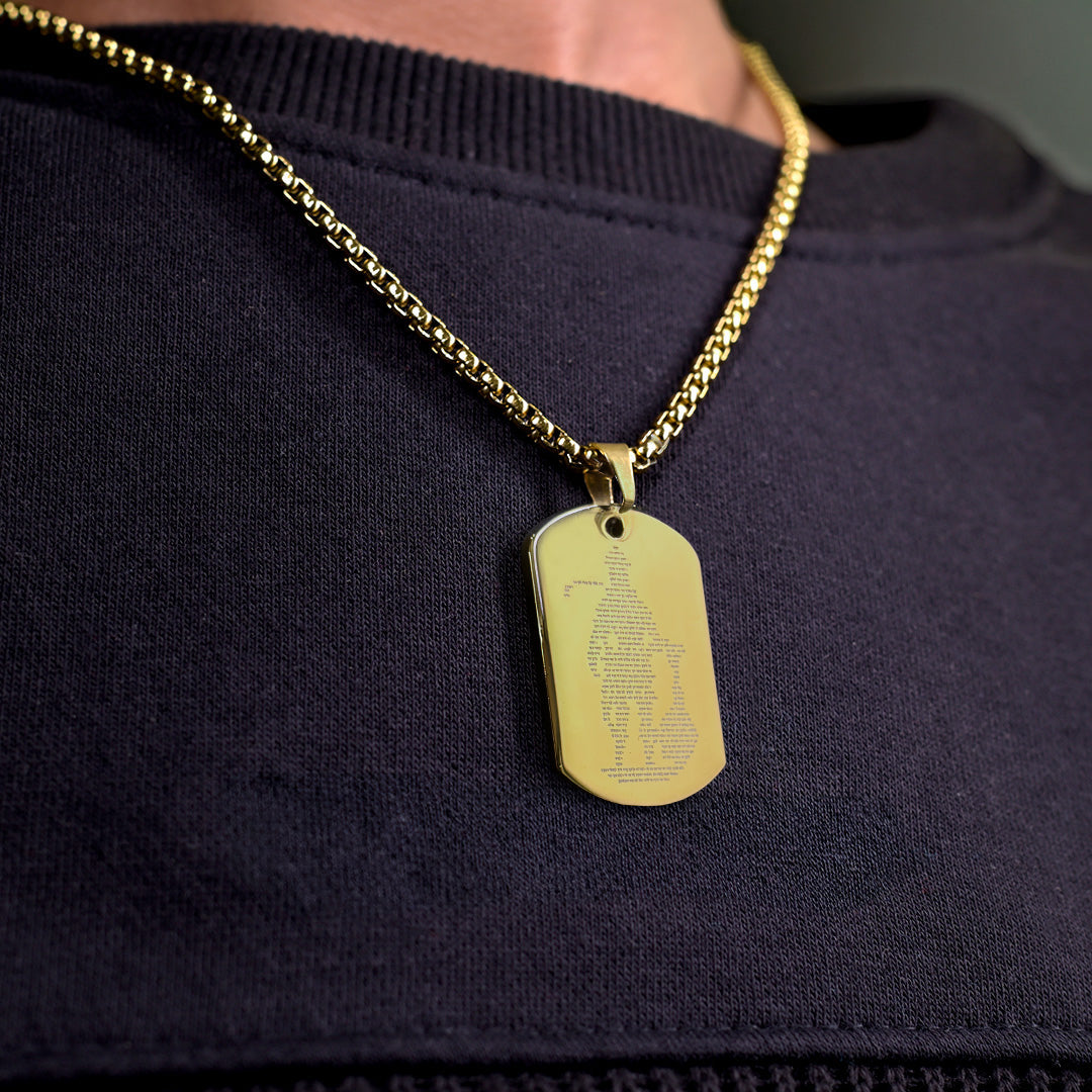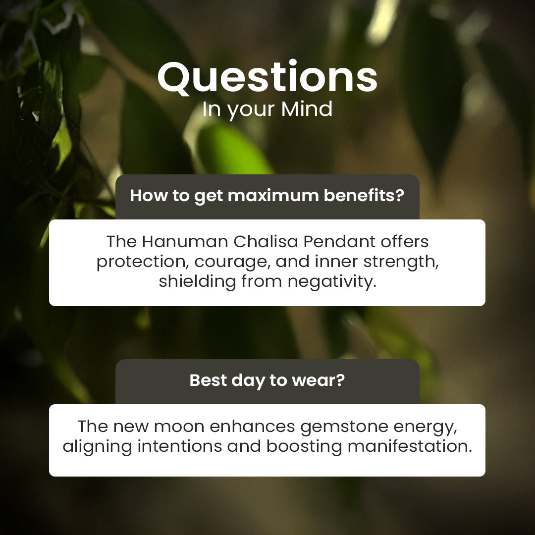 Enhance your style and spirituality with this Shree Hanuman Chalisa Kavach made from sturdy stainless steel. The pendant features a silhouette of Lord Hanuman, with the Hanuman Chalisa imprinted inside. The black color against the silver print, gives it a modern look, making it a great accessory for any outfit while reminding you of strength and protection.